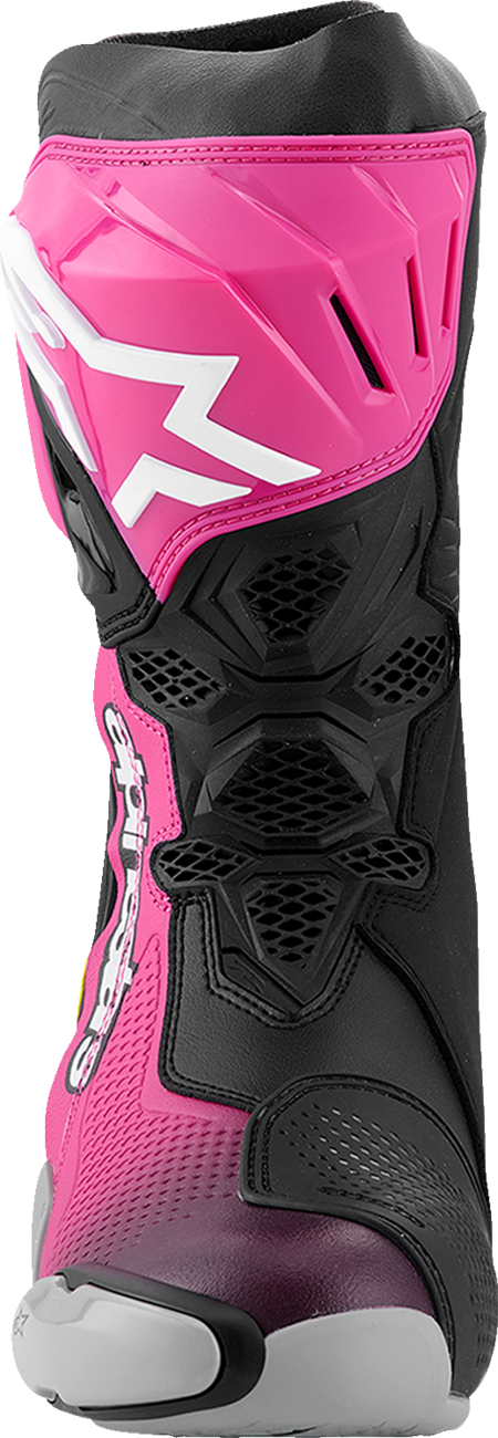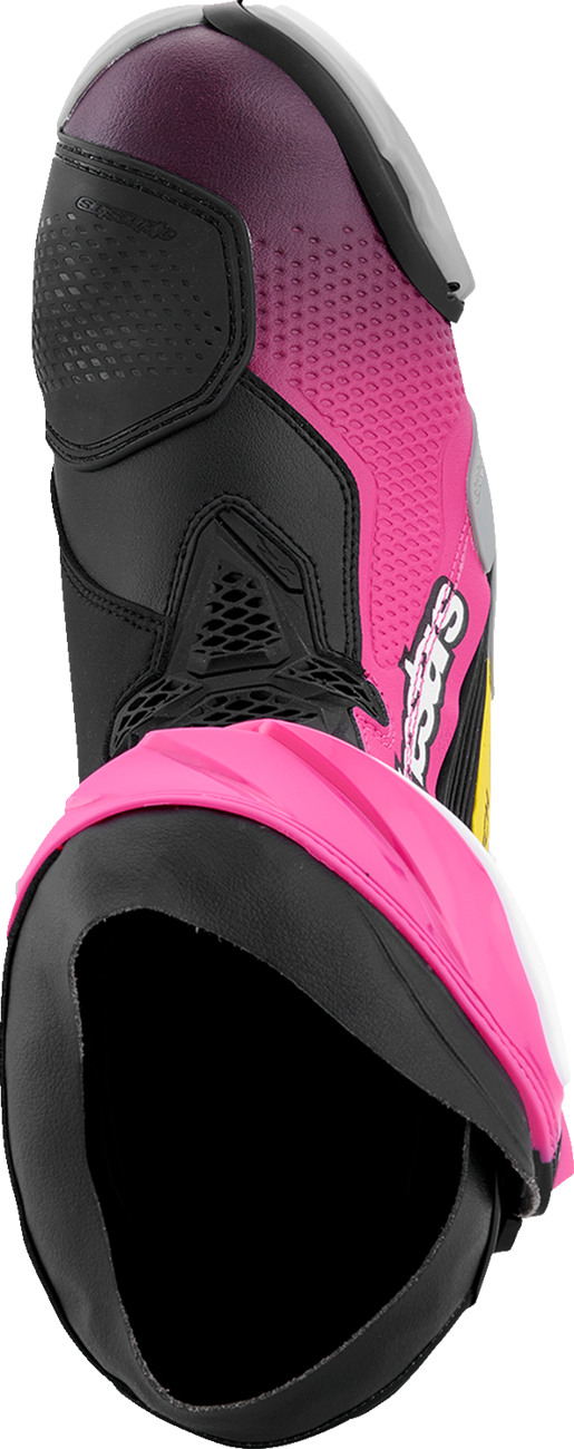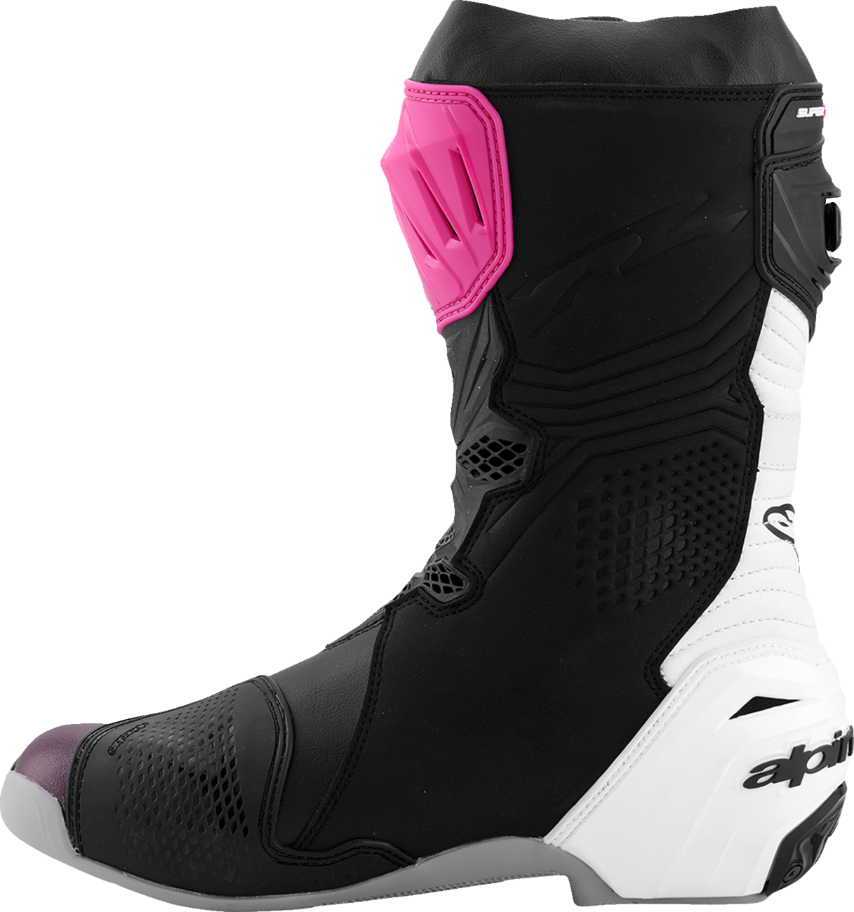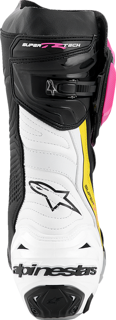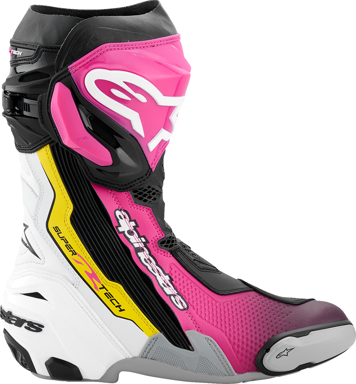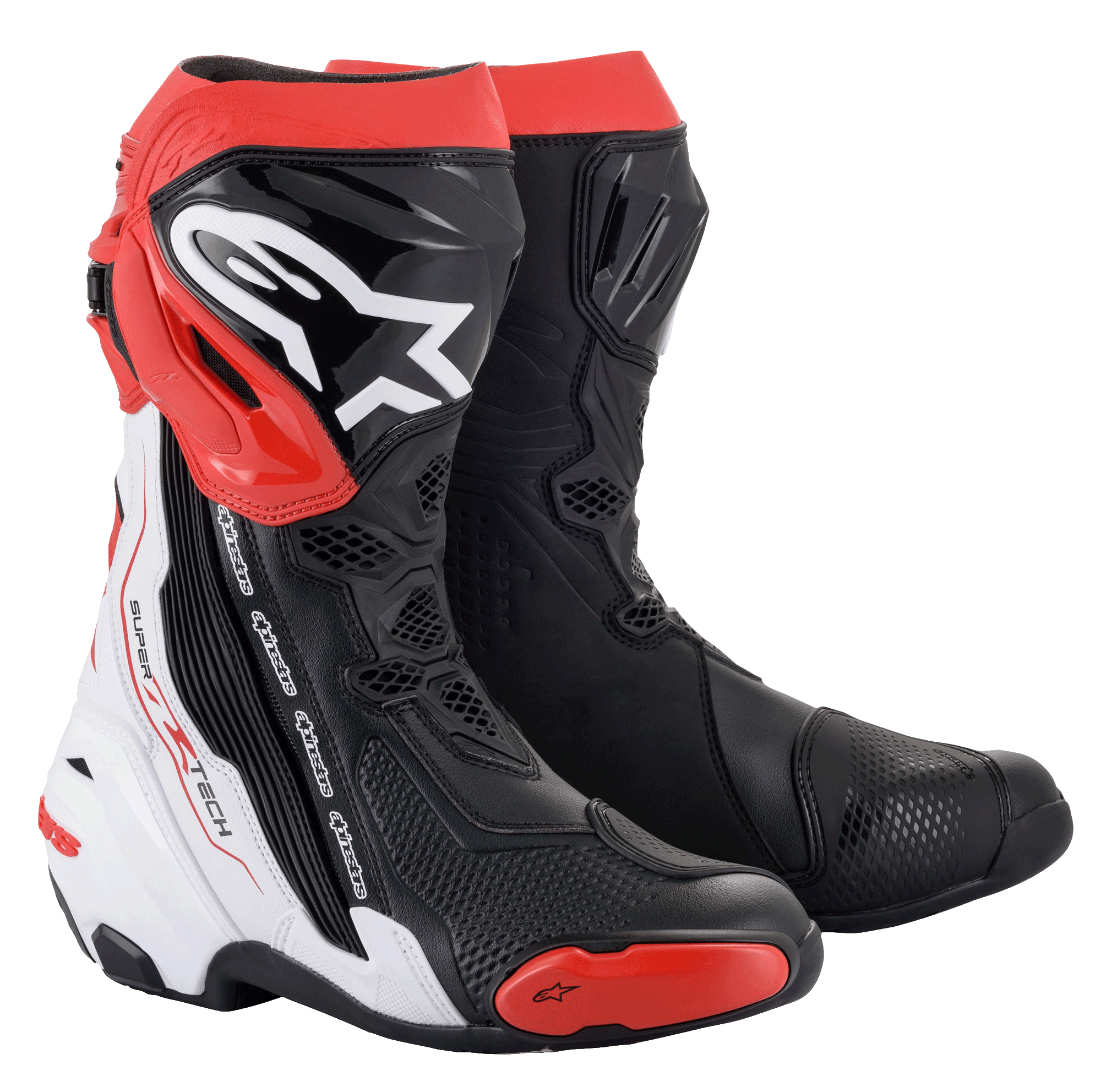 Almost every component of the Supertech R Boot, Alpinestars definitive racing boot as worn by a roster of champions past and present, has undergone a rigorous program of upgrades to sharpen its performance features even further. Featuring innovations derived using feedback from Alpinestars involvement in top flight racing, key elements include a newly redesigned front flex area, a redesigned rear bellow, a redesigned top gaitor, a new shifter and shin plate, a new shin slider and a new inner bootie, all of which enhance the comfort, protection and the performance of this boot to a new class-leading high.