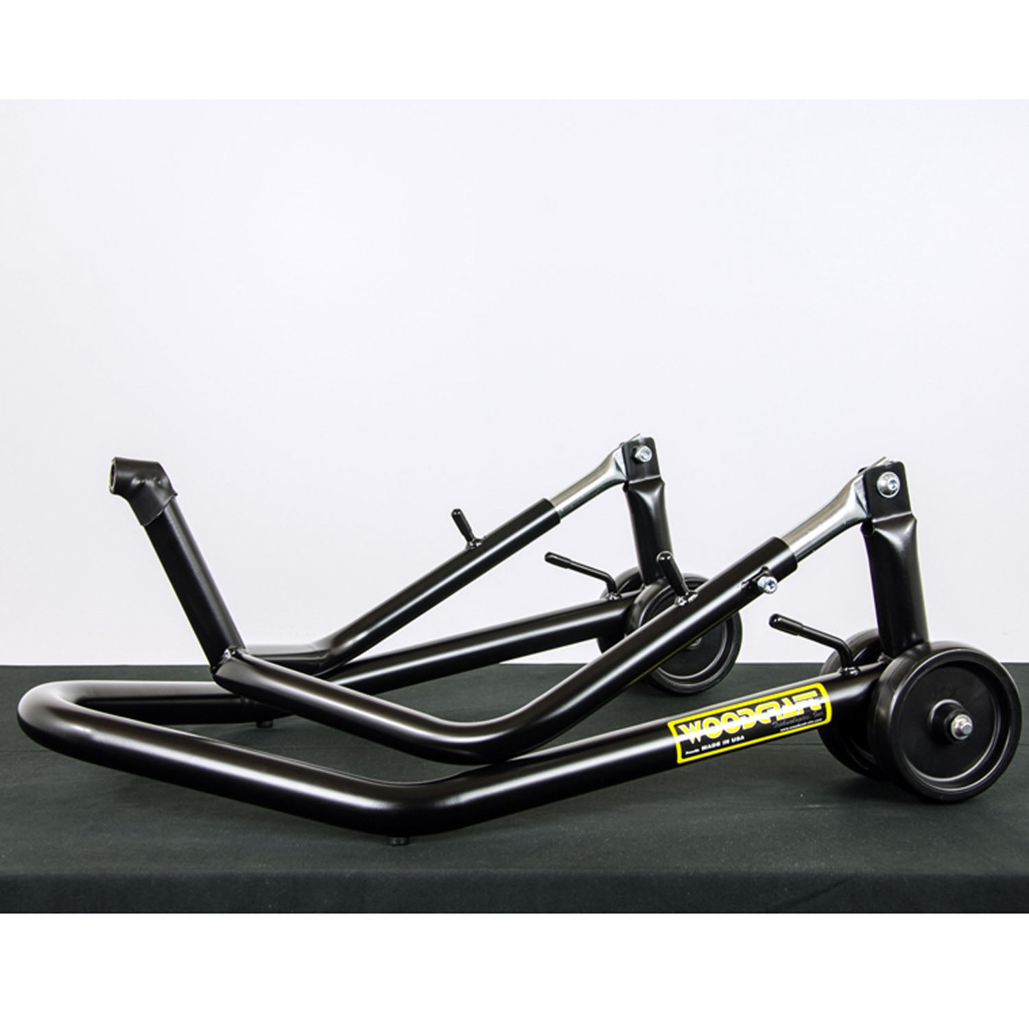 Woodcraft front paddock stand that lifts from the steering stem. Available as a base stand (bring your own pin) or with a pin included in your bike's stem size. Pin sold separately if ordering the base stand — see Woodcraft's fitment guide for your bike's pin size. Lifts from steering...